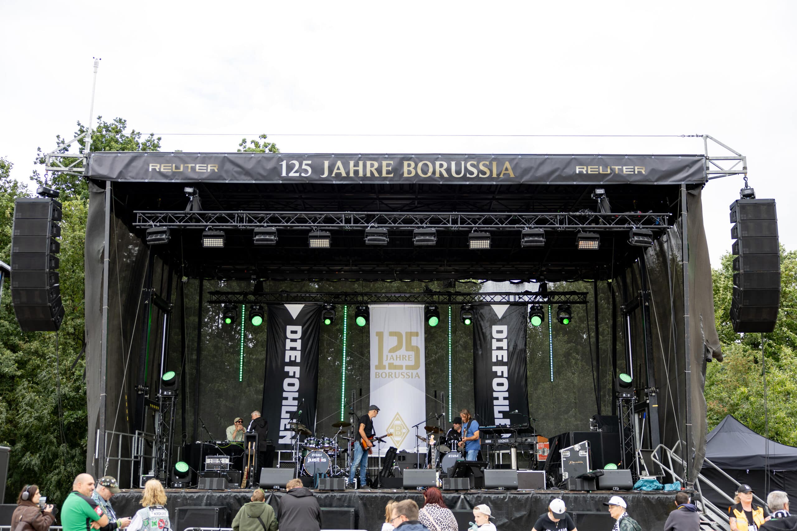 Den Auftakt bildete am Freitagabend der Golden Carpet Walk der Legenden. Über 3.000 Fans erlebten die feierliche Enthüllung der Statue, die wir technisch inszenierten und live zur Fanbühne übertrugen. Am Samstag folgte die große Saisoneröffnung im Borussia Park mit bis zu 50.000 Fans und anschließender Party. Von Bühne und FoH über Licht, Ton und Video bis hin zur kompletten Verstromung sorgte unser Team für einen reibungslosen Ablauf.